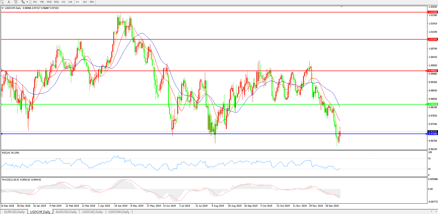 美元兑瑞郎USDCHF 日线图: