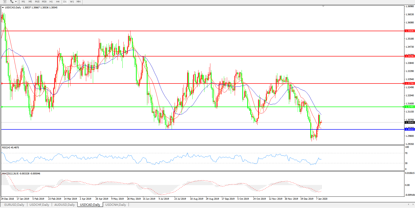 美元兑加元USDCAD    日线图: