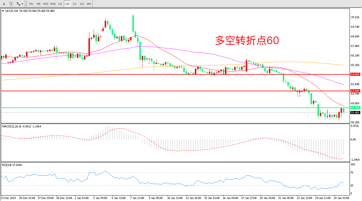 交易策略:在60.00之下看跌,目标57.00 55.00