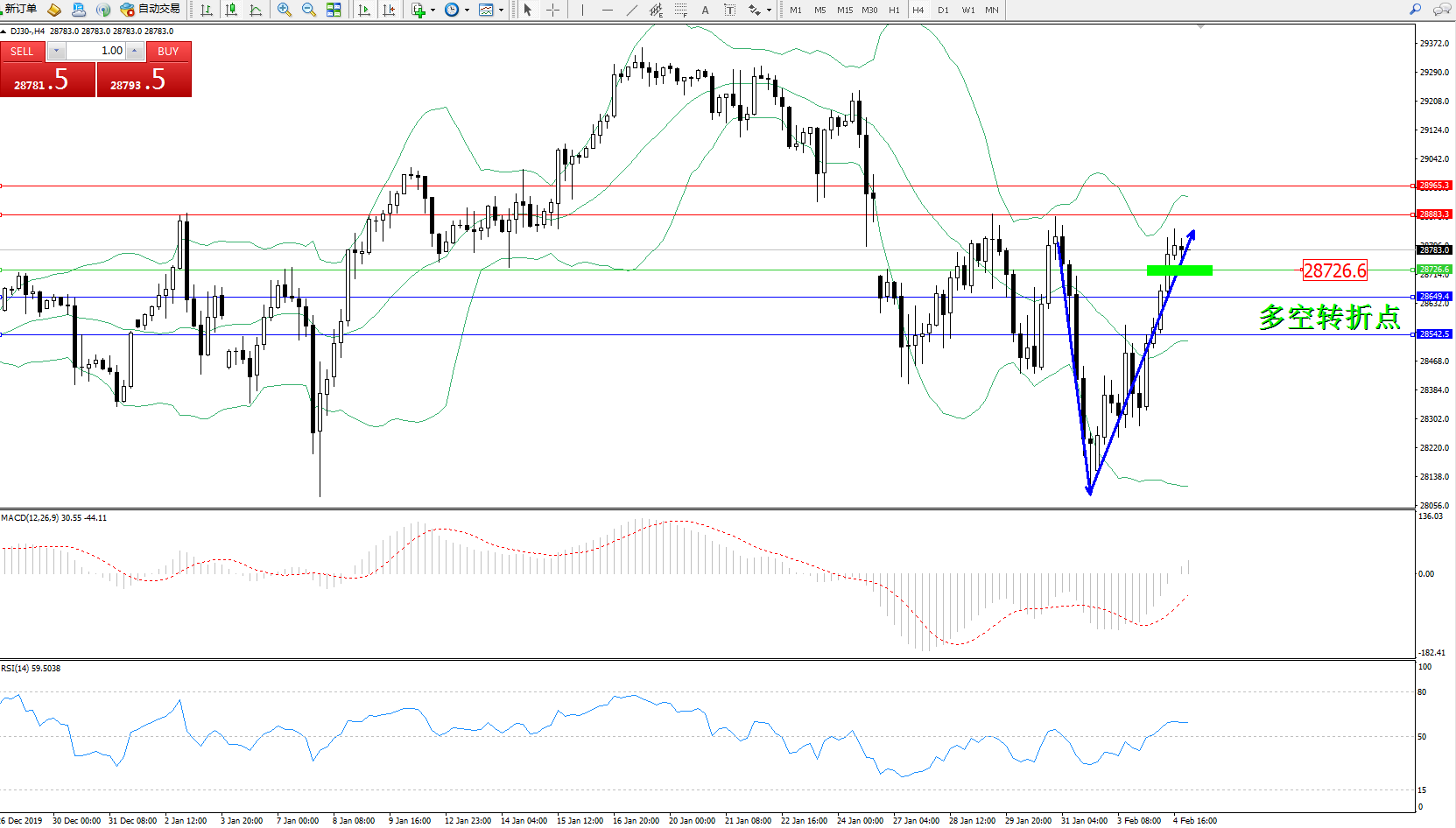 技术点评:空头动力急速下挫后得到支撑,开始震荡上移,破布林带指标中轨附近压制节点后强势上扬,呈V型反转走势,布林带指标开始收口走平,关注上轨附近压制节点,MACD指标多头动力强势上行破0轴线进入多头区域徘徊,RSI指标处于多头区域弱势整理平移中;