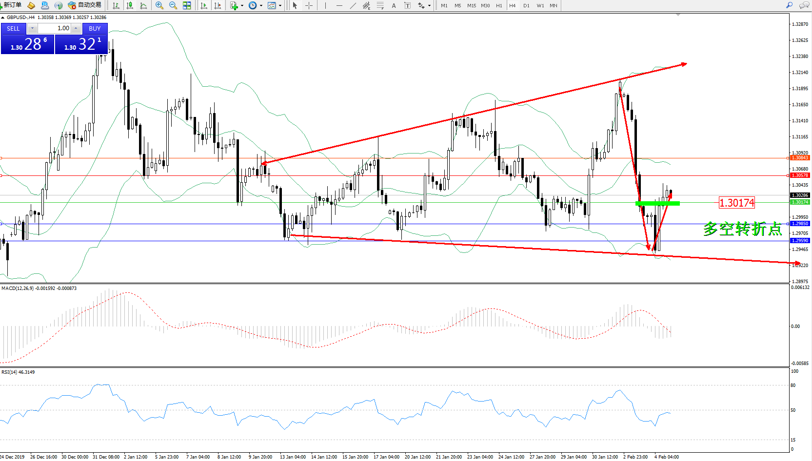 交易策略:1.30174上方看涨,目标1.305781.30843