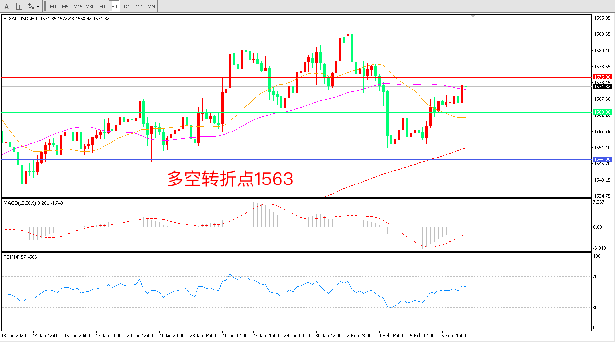 交易策略:在1563.00之上看涨,目标1575.00   1610.00