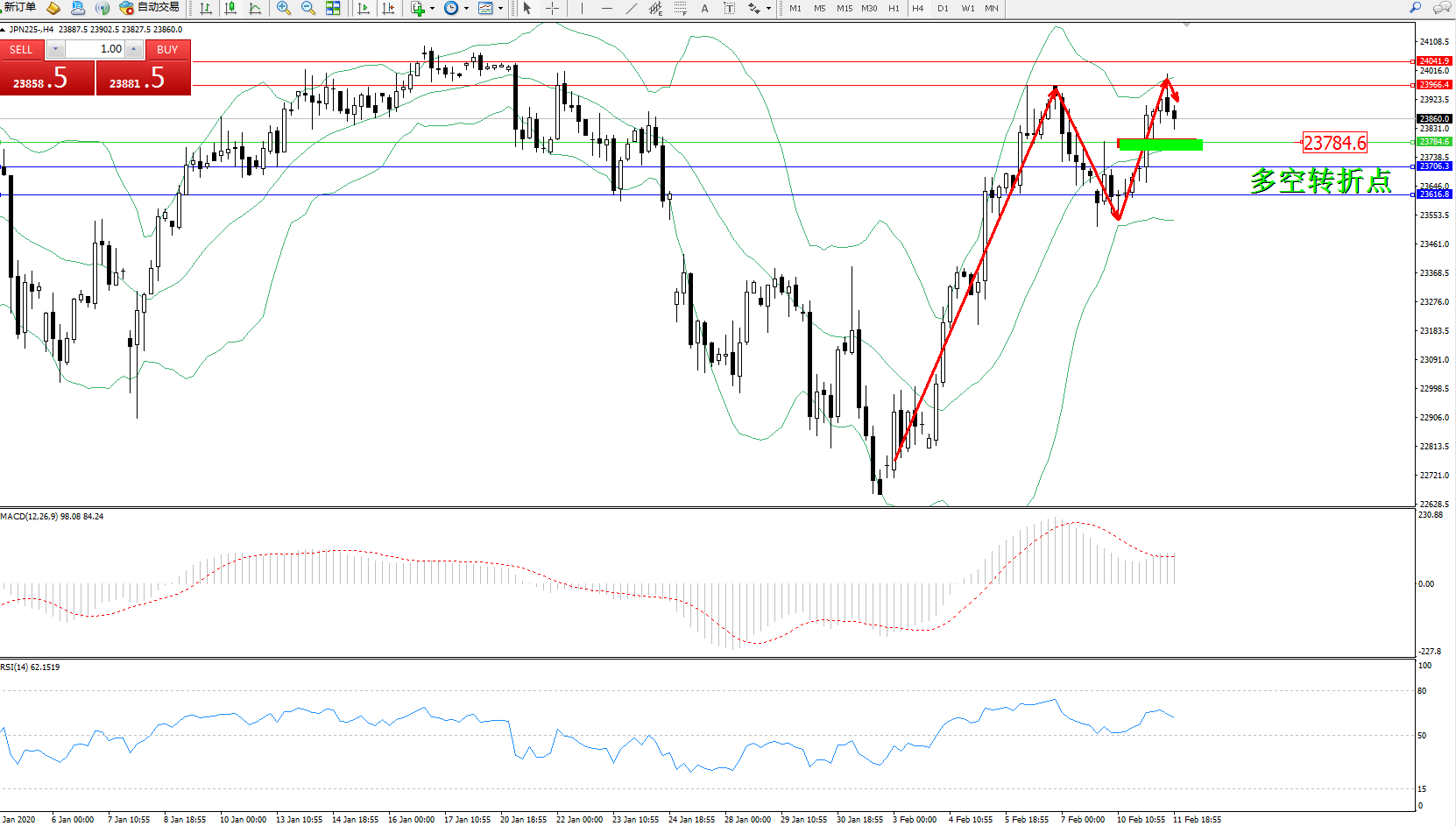 日经225指数2月10日(周一)收盘下跌145.48点,跌幅0.61%,报23682.50点。日本的旅游业红利凸显出其在当前市场形势下的经济风险;得益于游客消费的拉动,日本服务贸易2019年首次录得了整体顺差,旅游业在这个世界第三大经济体经济中所发挥的重要作用由此凸显无余。周一公布的最新经常项目数据显示,日本2019年服务贸易实现了1996年有可比数据以来的首次顺差,旅游业作出的净贡献高达2.64万亿日元(240亿美元);目前市场形势将会使日本经济在2020年陷入衰退。游客开支拉动日本服务贸易在2019年摆脱了逆差。