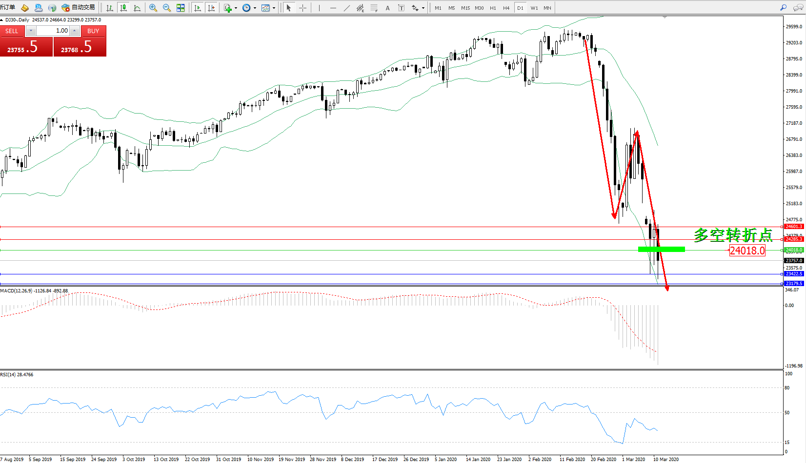 道琼斯指数311日(周三)收盘下跌1464.60点,跌幅5.85%,报23553.53点。美股周三大幅收跌,道指重挫逾1400点,率先跌入熊市,盘中三大股指一度悉数跌入熊市。市场仍在担忧疫情蔓延将重创全球经济。投资者普遍预计长达11年的美股牛市即将结束。笼罩股市的疫情担忧继续,全球央行都在出台刺激措施。风险资产全日大幅走低,随着确诊病例数量增加和更多国家实施旅行限制,美国在国内和国际上都缺乏领导力,这不会提振投资者信心。