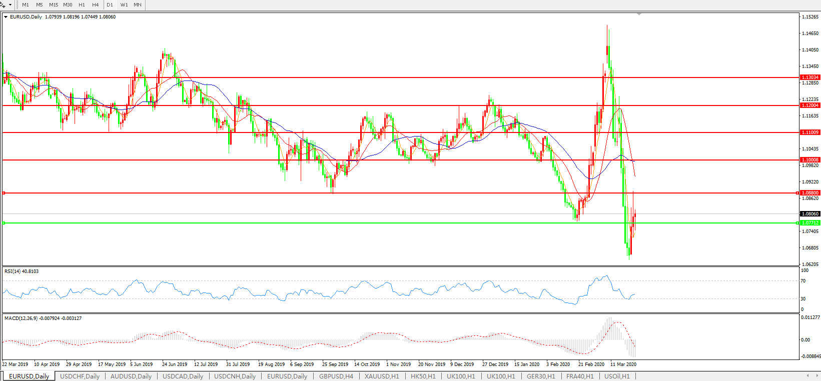 交易策略:1.0770上方看涨,目标1.0880、1.1000