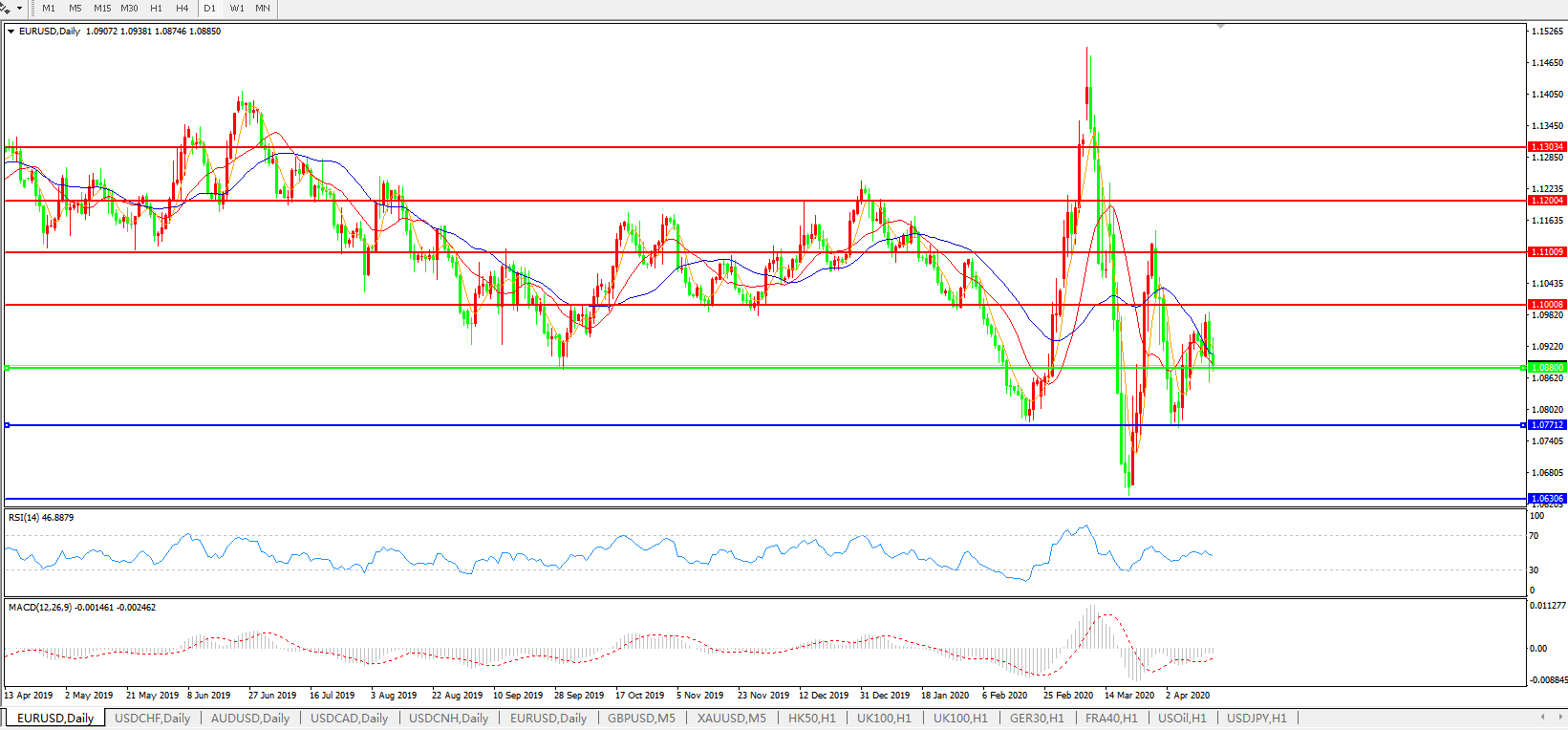 欧元兑美元EURUSD 日线图: