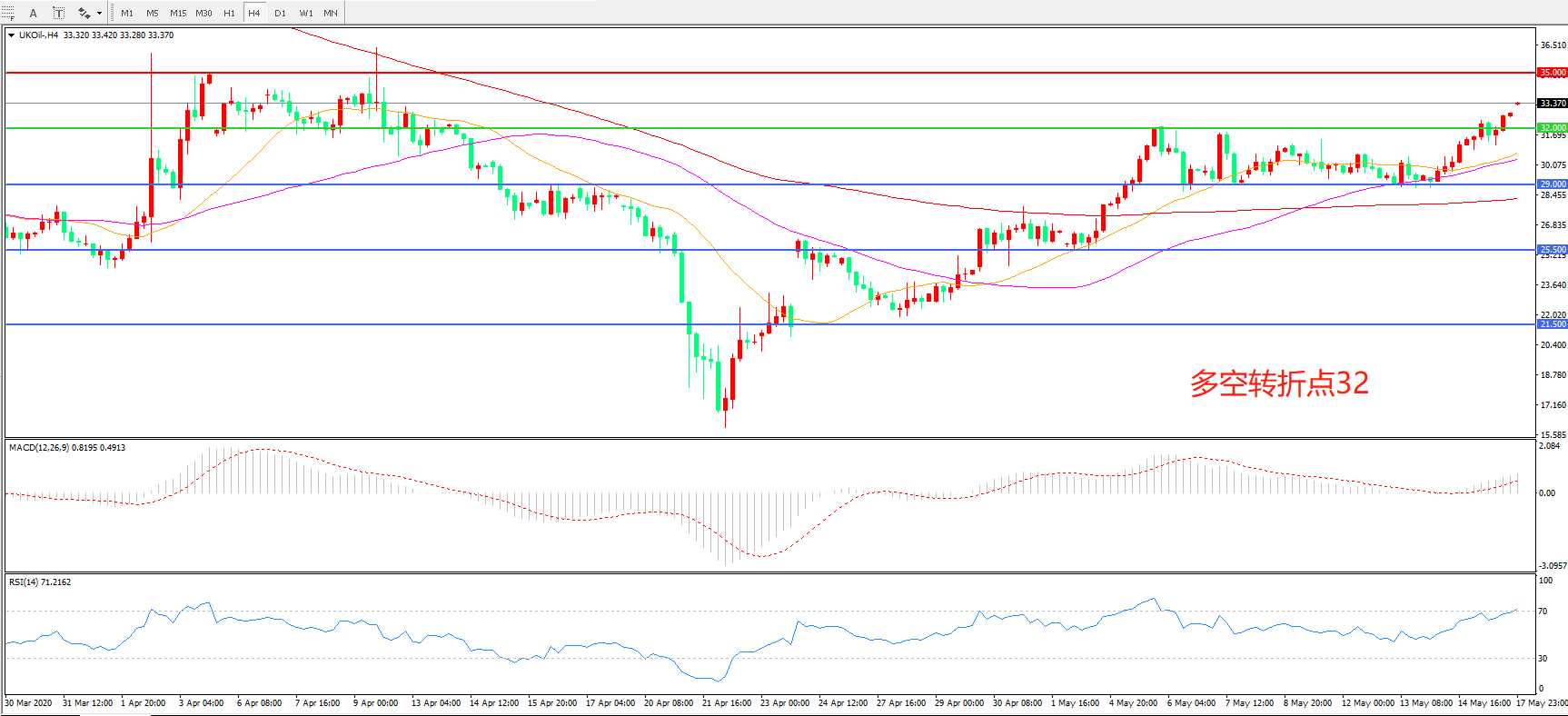 上周,受益于全球复工开启和中国需求数据改善,布伦特原油大幅反弹,收报32.85美元/桶。沙特在达成减产协议的基础之上,再带头额外减产给油价强劲的支撑,随着OPEC及其盟友的日产量减幅达到接近1000万桶的水平,市场前景正在持续改善。