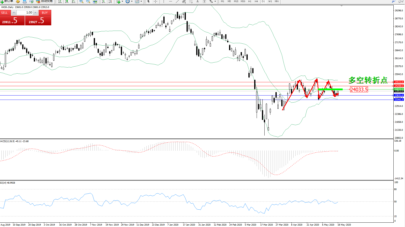 香港恒生指数5月18日(周一)收盘上涨137.30点,涨幅0.58%,报23934.77点;港股市场三大指数均上涨,生物医药B类股全线大涨, 迈博药业-B暴涨50%,君实生物等多股续创新高;国际油价持续反弹,石油股集体强势,中海油飙涨近8%领涨蓝筹;美国加大对华为限制,手机概念股大跌居前,舜宇、比亚迪电子皆跌超10%;半导体股中芯国际高开低走,收跌6.37%。 恒生指数公司公告称,纳入同股不同权公司及第二上市公司至恒生指数及恒生中国企业指数选股范畴,此类公司在指数里的个别成份股比重上限设定为5%;同时撤除对红筹股及民营企业加入恒生中国企业指数的额外挑选准则。决定对现时恒生指数的定位不作任何改变。