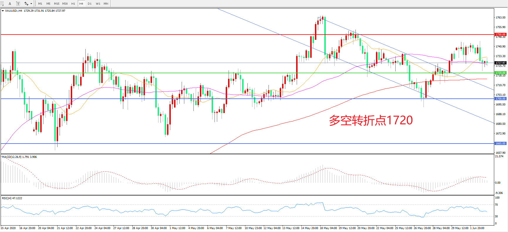 交易策略:  在1720.00之上看涨,目标1750.00   1785.00