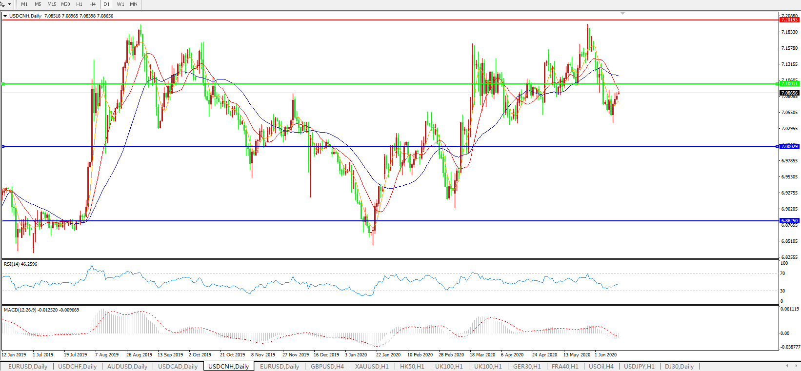 美元兑人民币USDCNH    日线图: