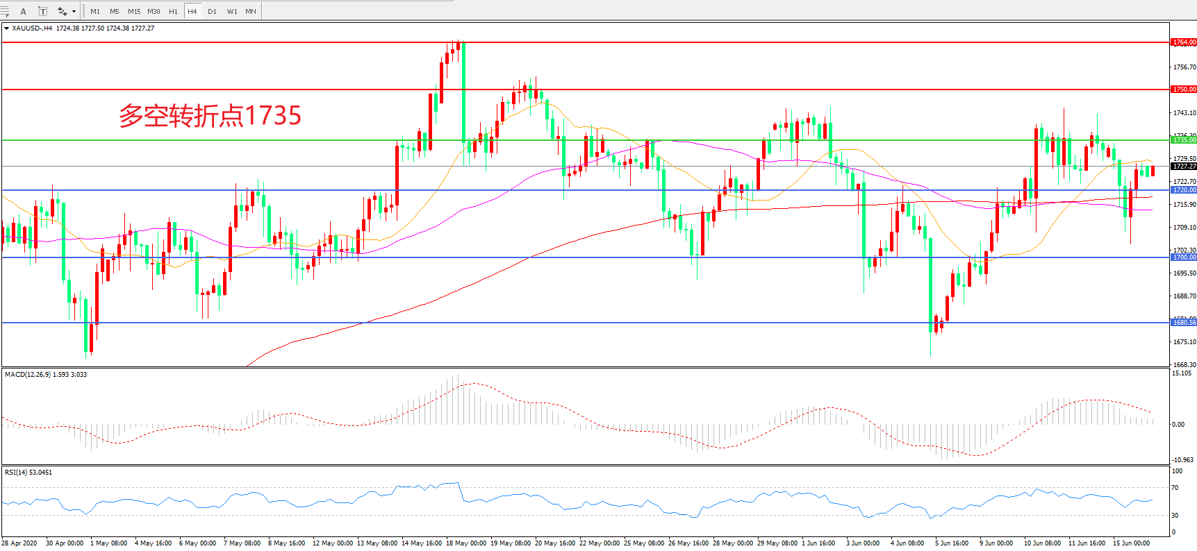 多空转折点:1735.00