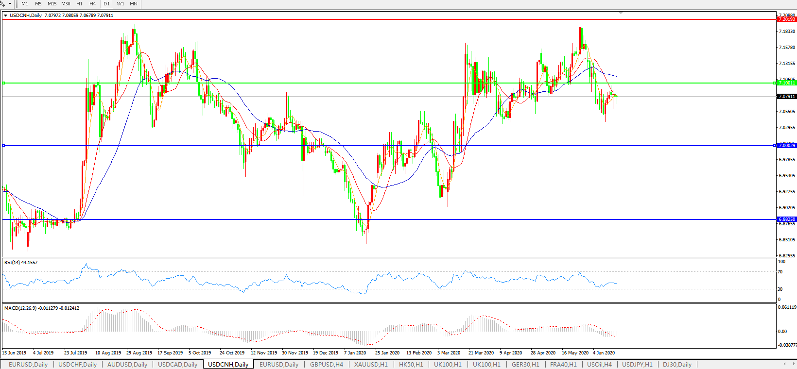 交易策略: 在7.1000之下,看跌,目标价位为7.0000,然后为6.8820。