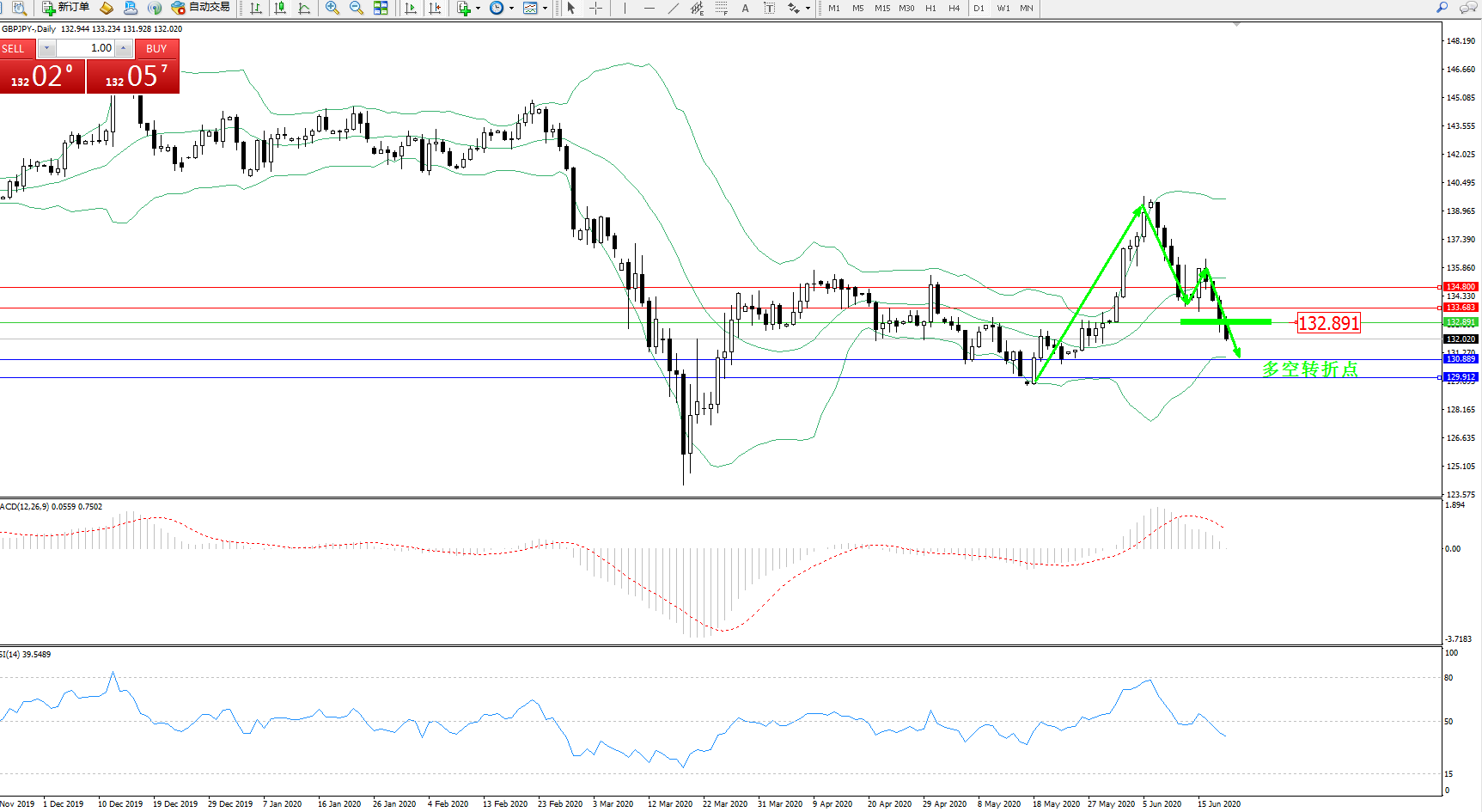 技术点评:空头动力急速震荡下行至布林带指标中下轨区间持续下挫中,空头动力未见其止步迹象,有继续下行态势,布林带指标呈收口走势后开始有走平迹象,MACD指标处于多头区域弱势持续震荡下行至0轴线附近徘徊,RSI指标空头动力急速震荡下行至50均衡线后得到短暂支撑但未能改变下行进入空头区域态势;