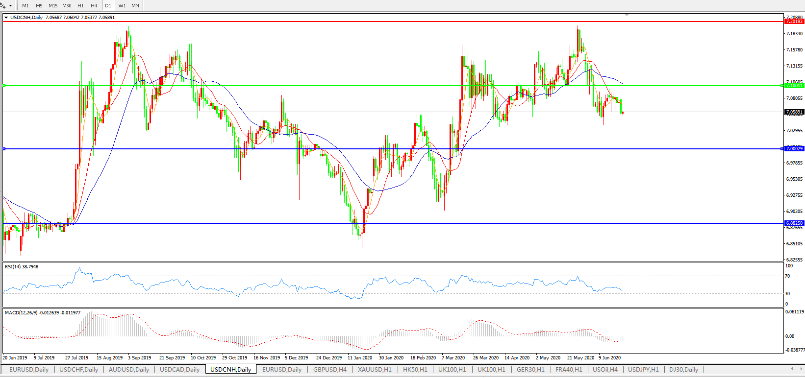 交易策略: 在7.1000之下,看跌,目标价位为7.0000,然后为6.8820。