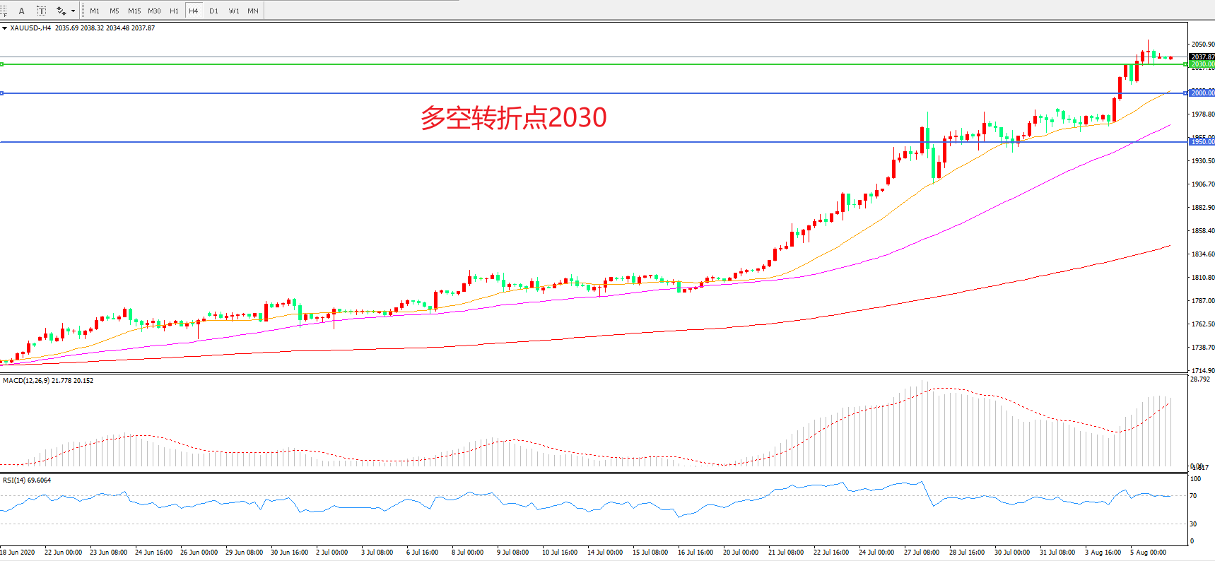 多空转折点:2030.00