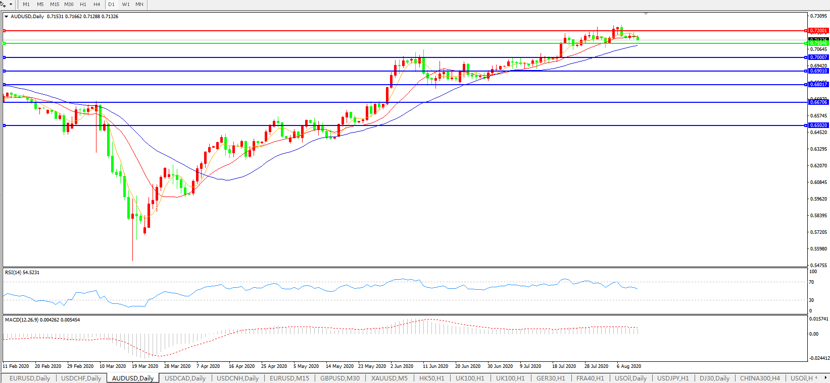 交易策略:0.7100上方看涨,目标0.7200、0.7300