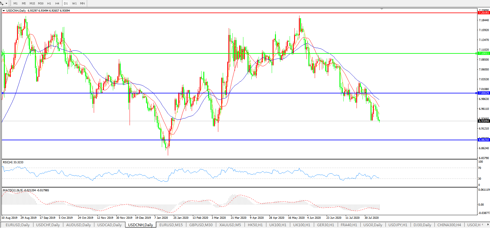 美元兑人民币USDCNH    日线图:
