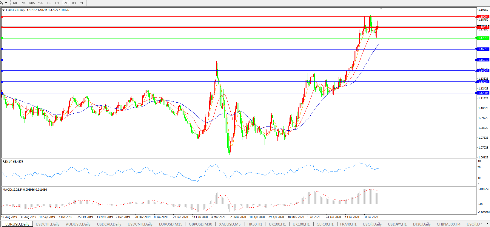 欧元兑美元EURUSD 日线图:
