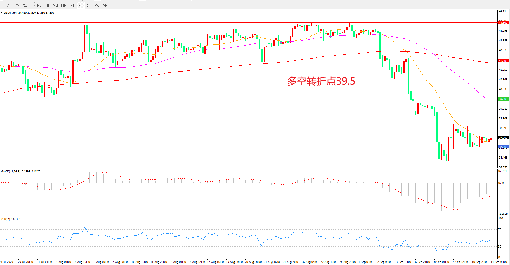 多空转折点:39.50