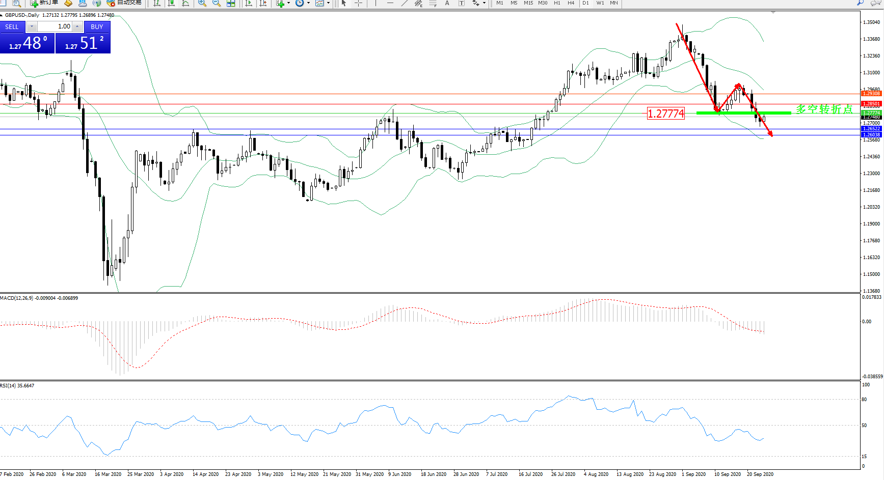 交易策略:1.27774下方看跌,目标1.26522、1.26038