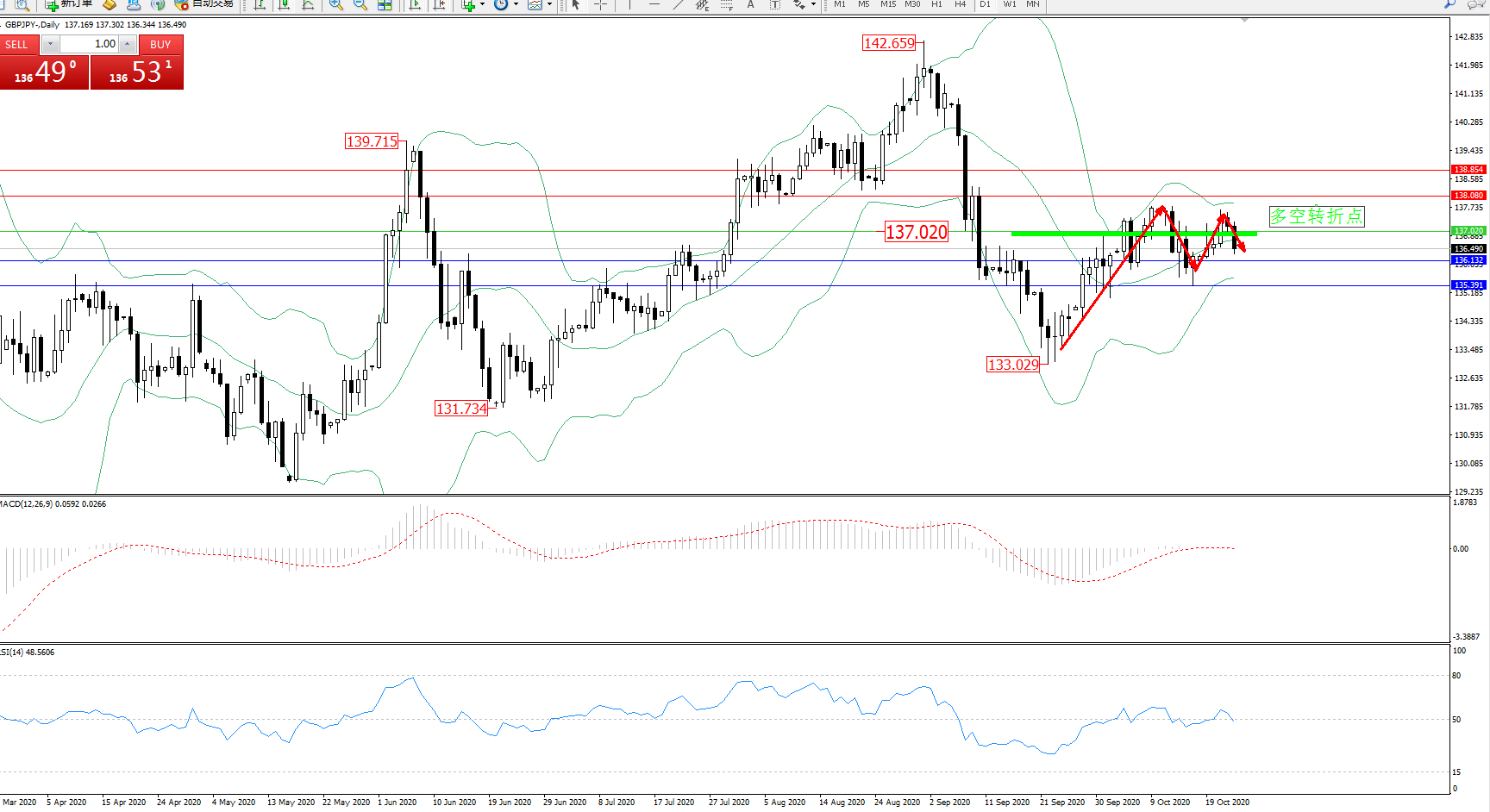 多空转折点:137.020