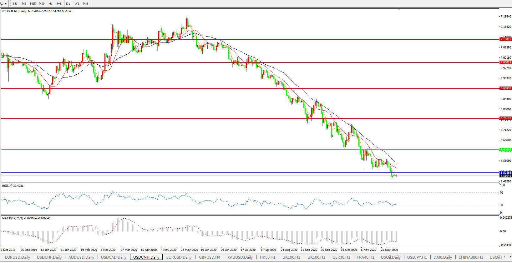 美元兑人民币USDCNH    日线图: