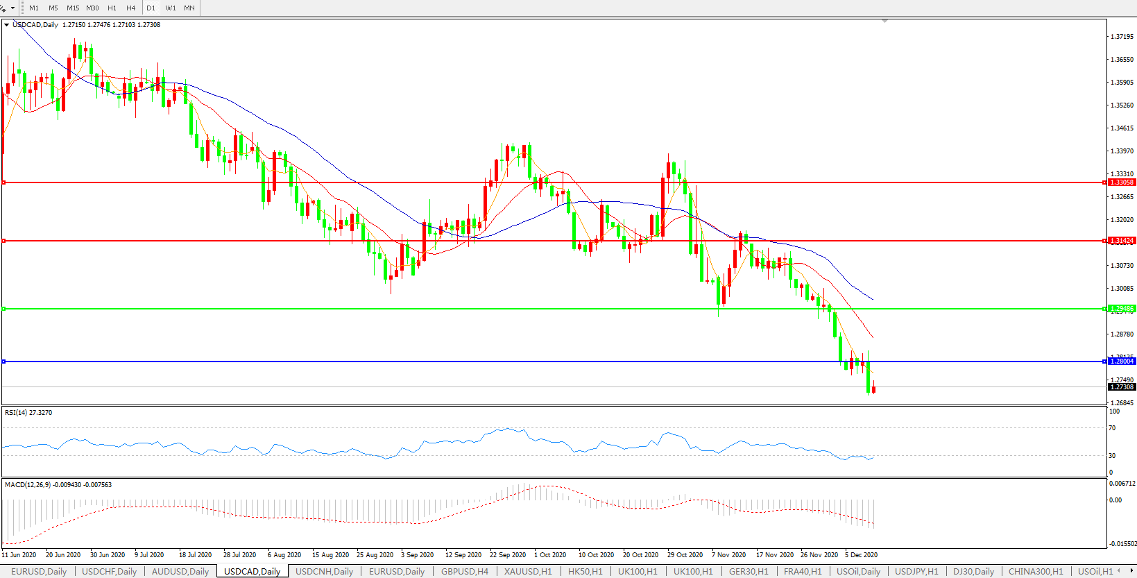 美元兑加元USDCAD 日线图: