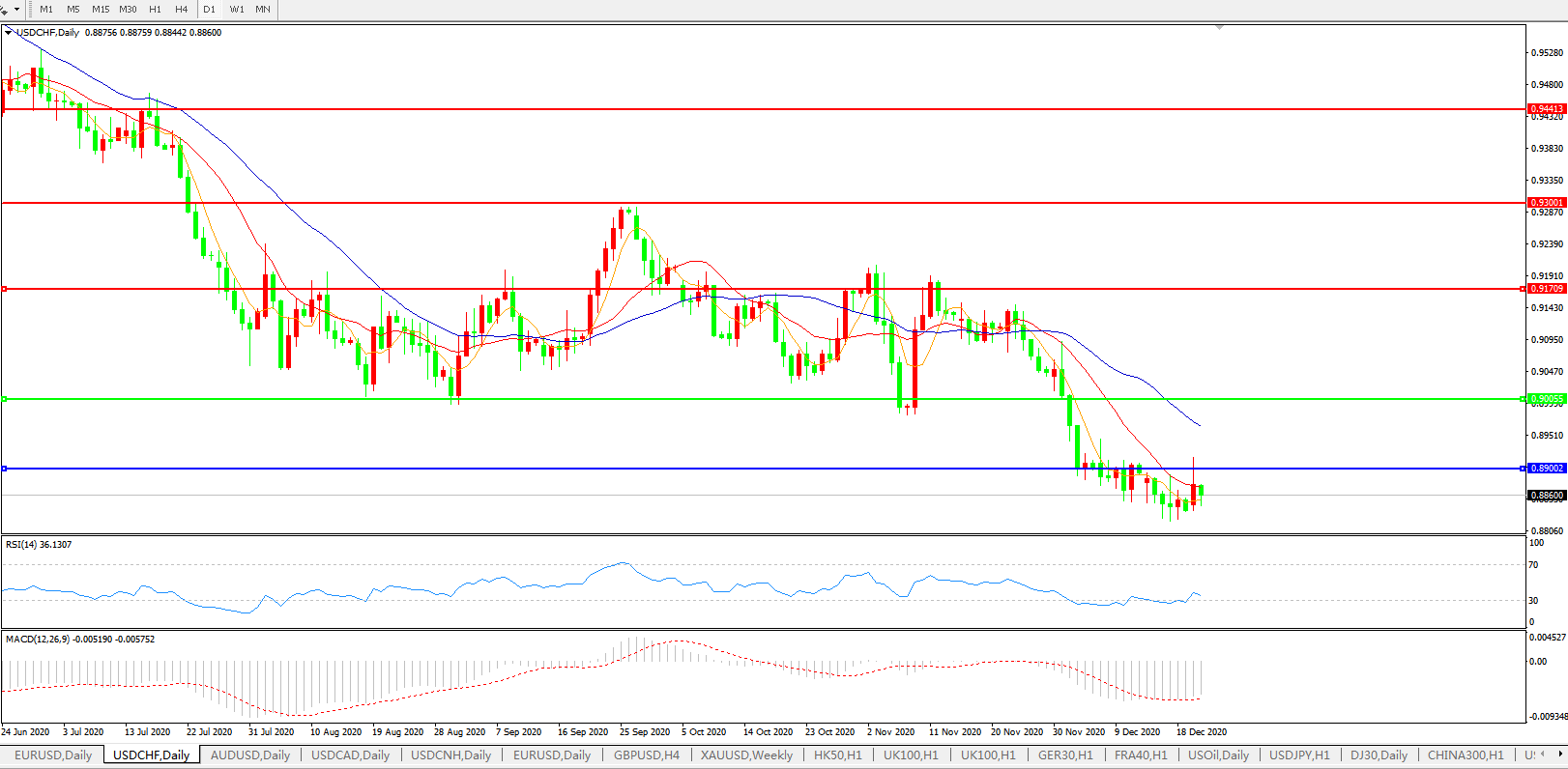 美元兑瑞郎USDCHF 日线图: