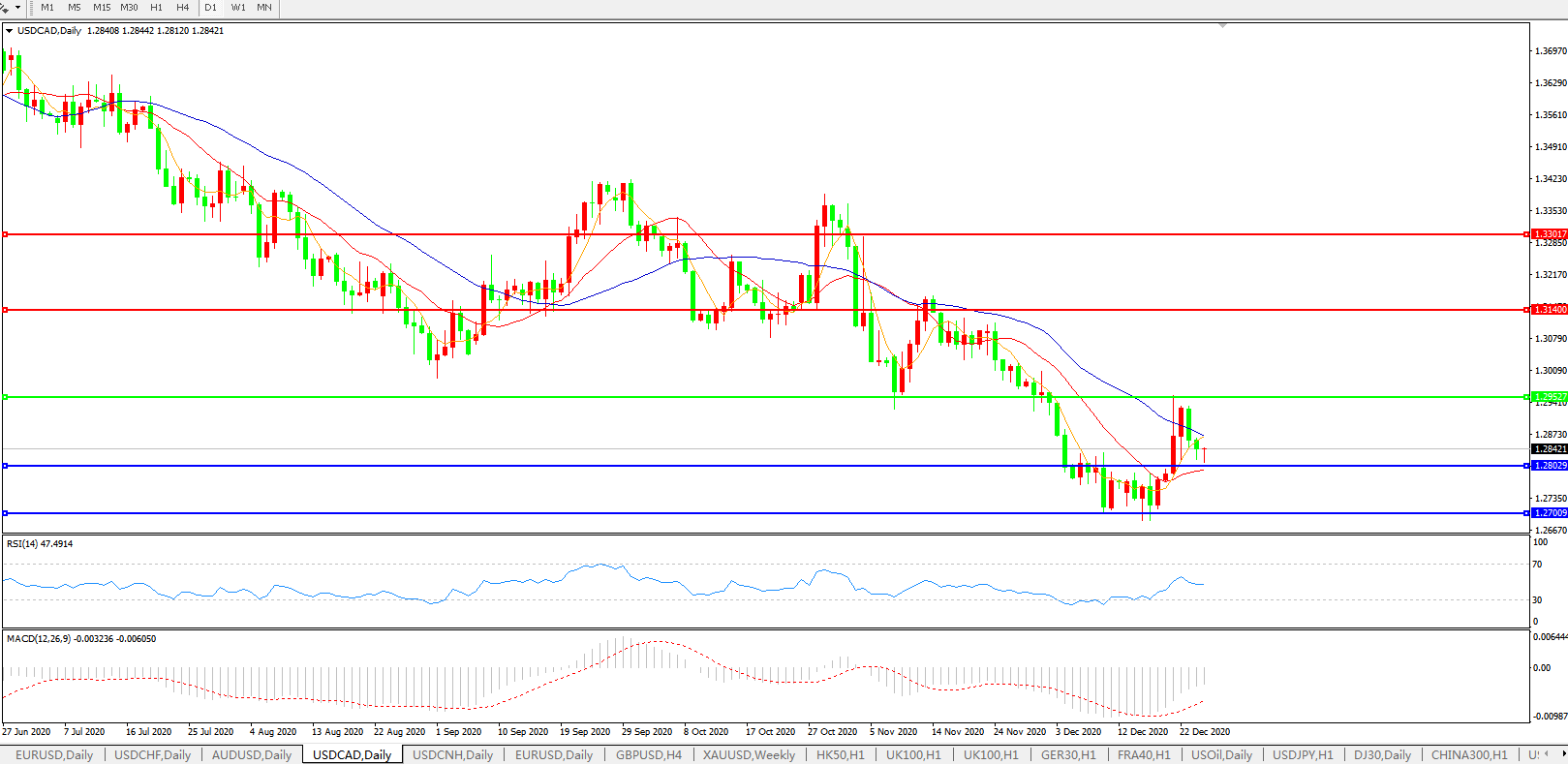 美元兑加元USDCAD 日线图: