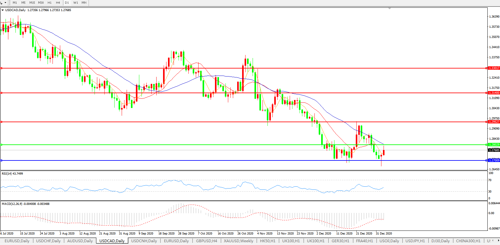 美元兑加元USDCAD 日线图: