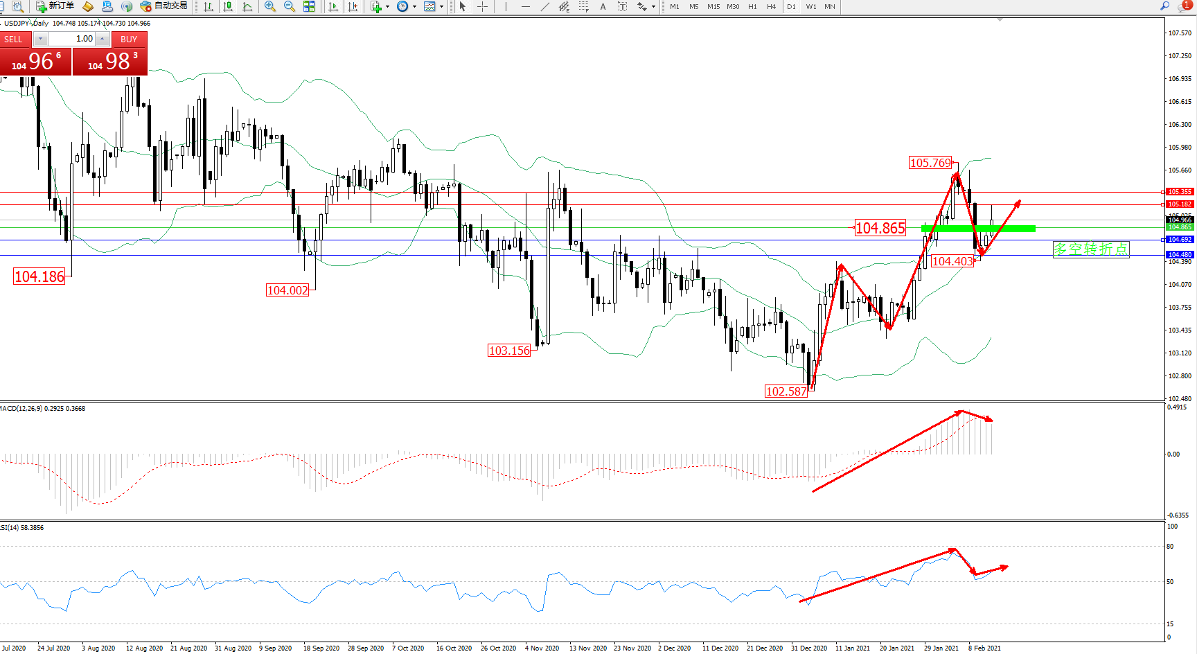 多空转折点:104.865