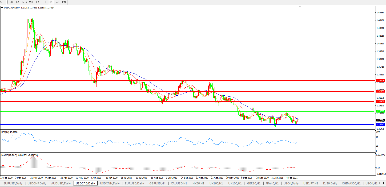 美元兑加元USDCAD 日线图:
