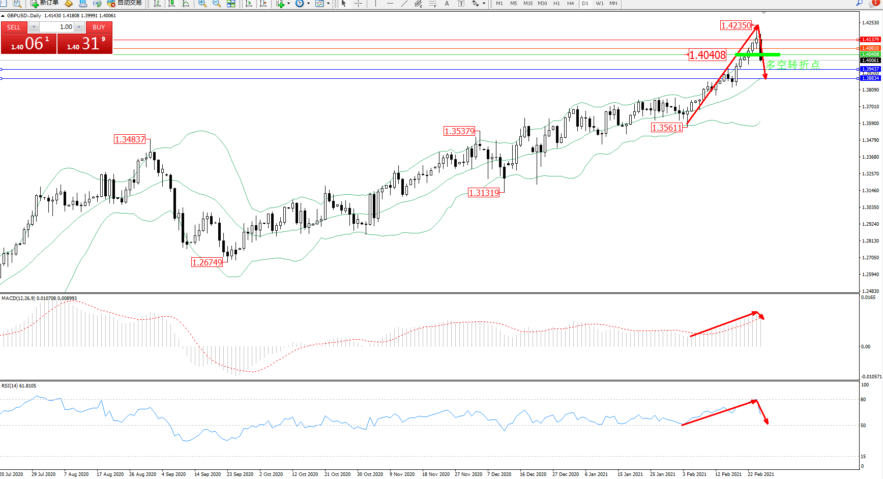 备选策略:1.40408上方看涨,目标1.40810、1.41379