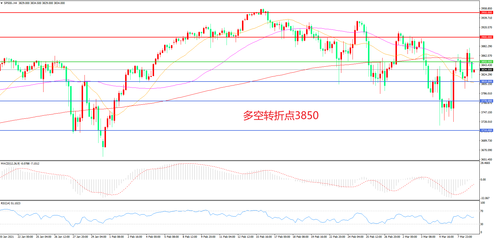 多空转折点:3850.00