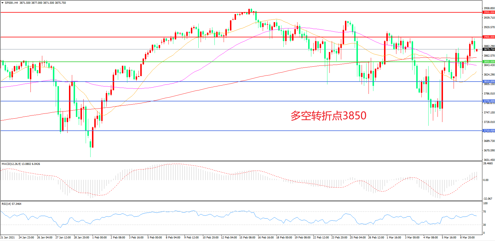 多空转折点:3850.00