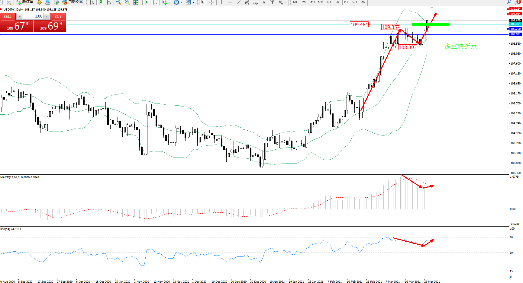 多空转折点:109.481