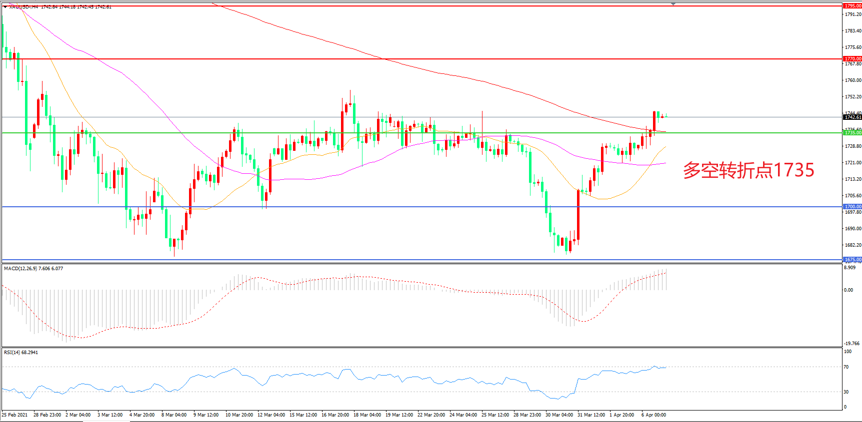 交易策略:在1735.00之上看涨,目标1770.00 2000.00