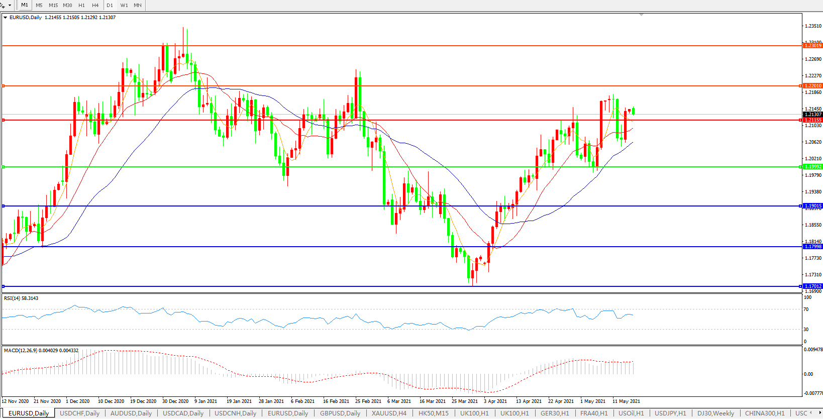 欧元兑美元EURUSD 日线图: