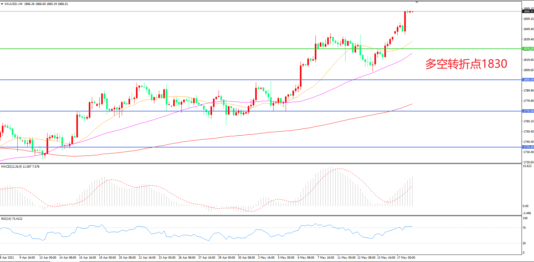 交易策略:在1830.00之上看涨,目标1865.00    1900.00