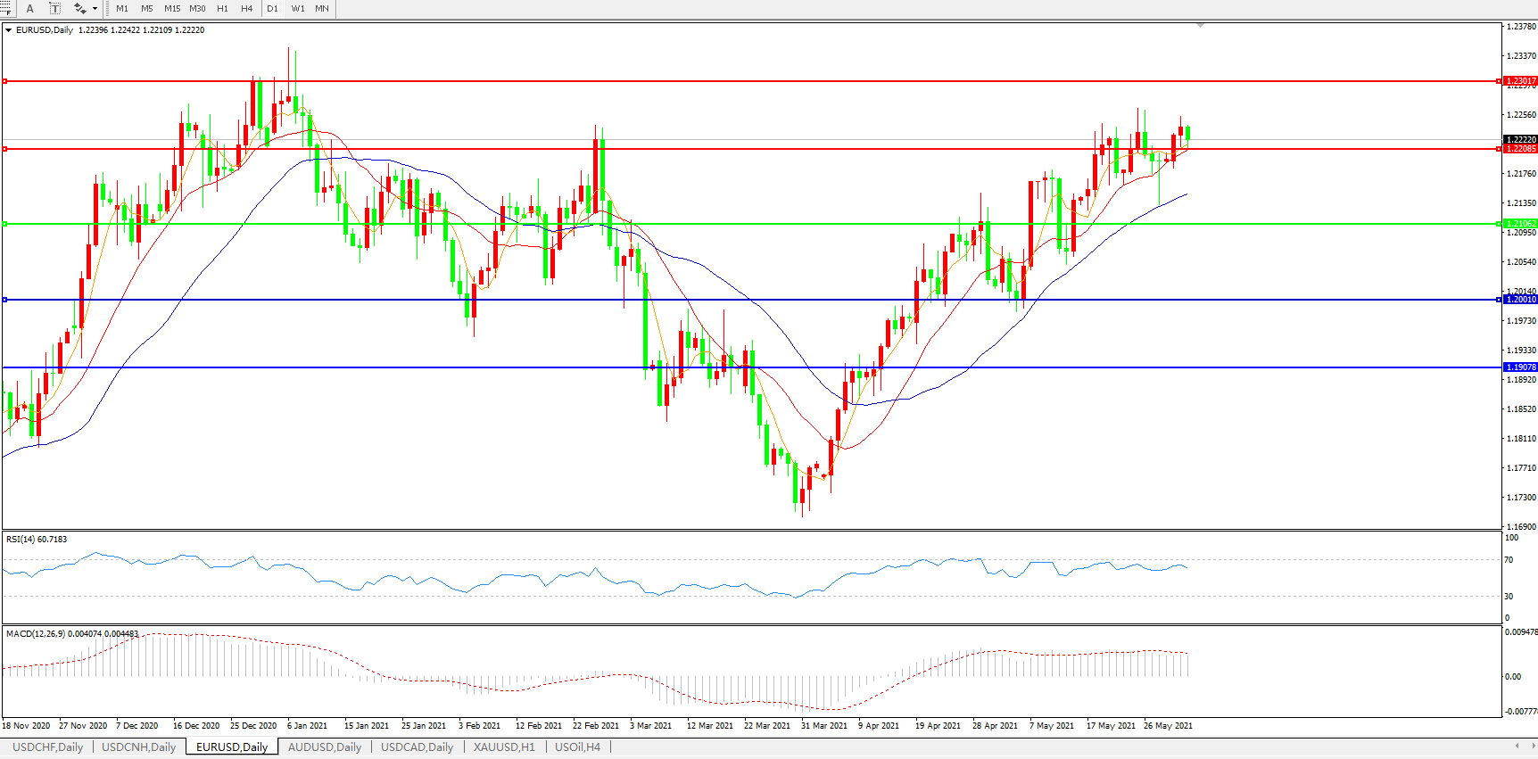 欧元兑美元EURUSD 日线图: