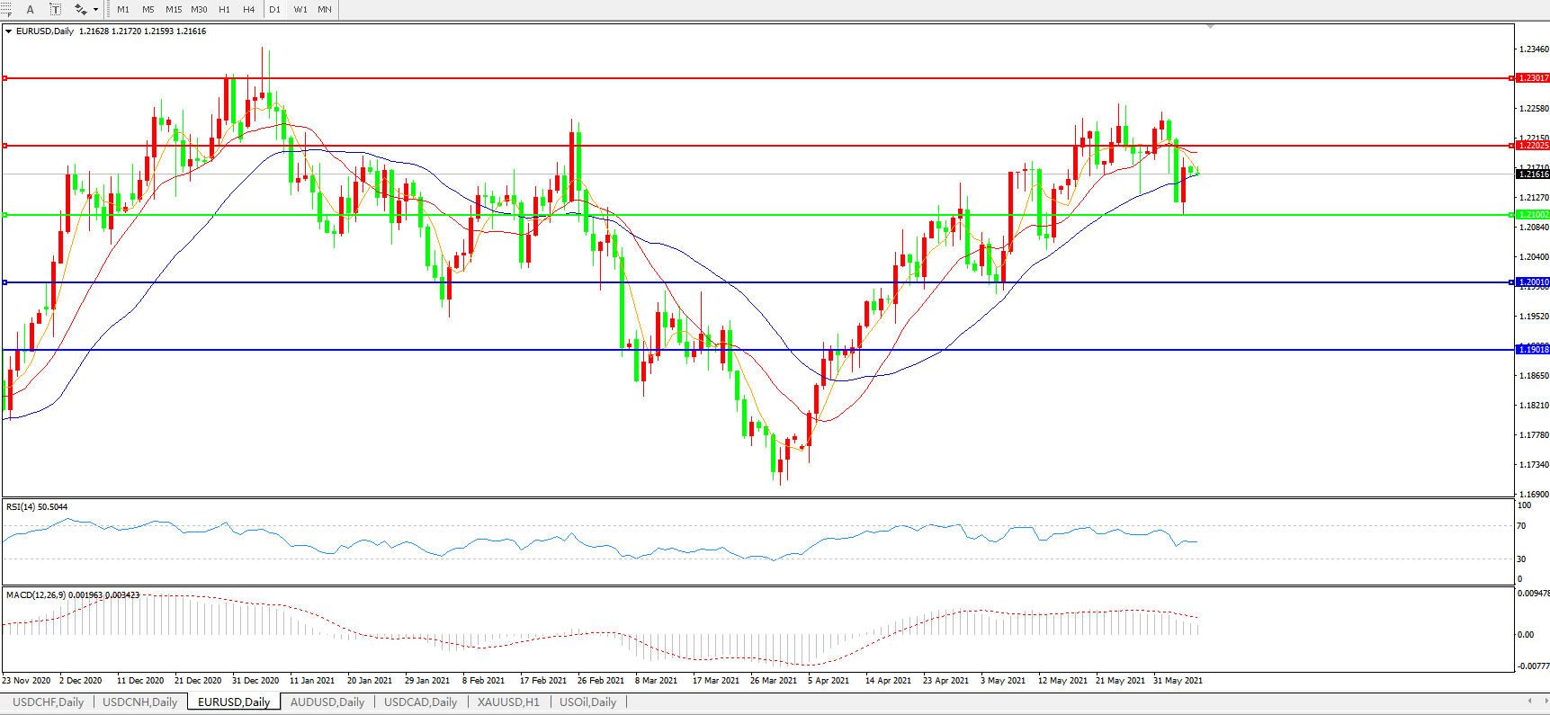 欧元兑美元EURUSD 日线图: