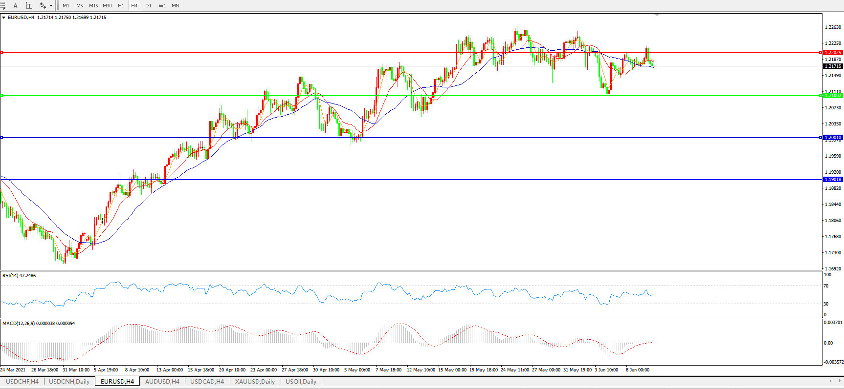 欧元兑美元EURUSD   4小时图: