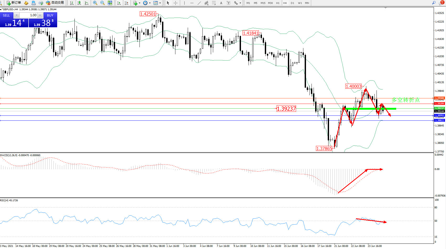 交易策略:1.39237下方看跌,目标1.38993、1.38822