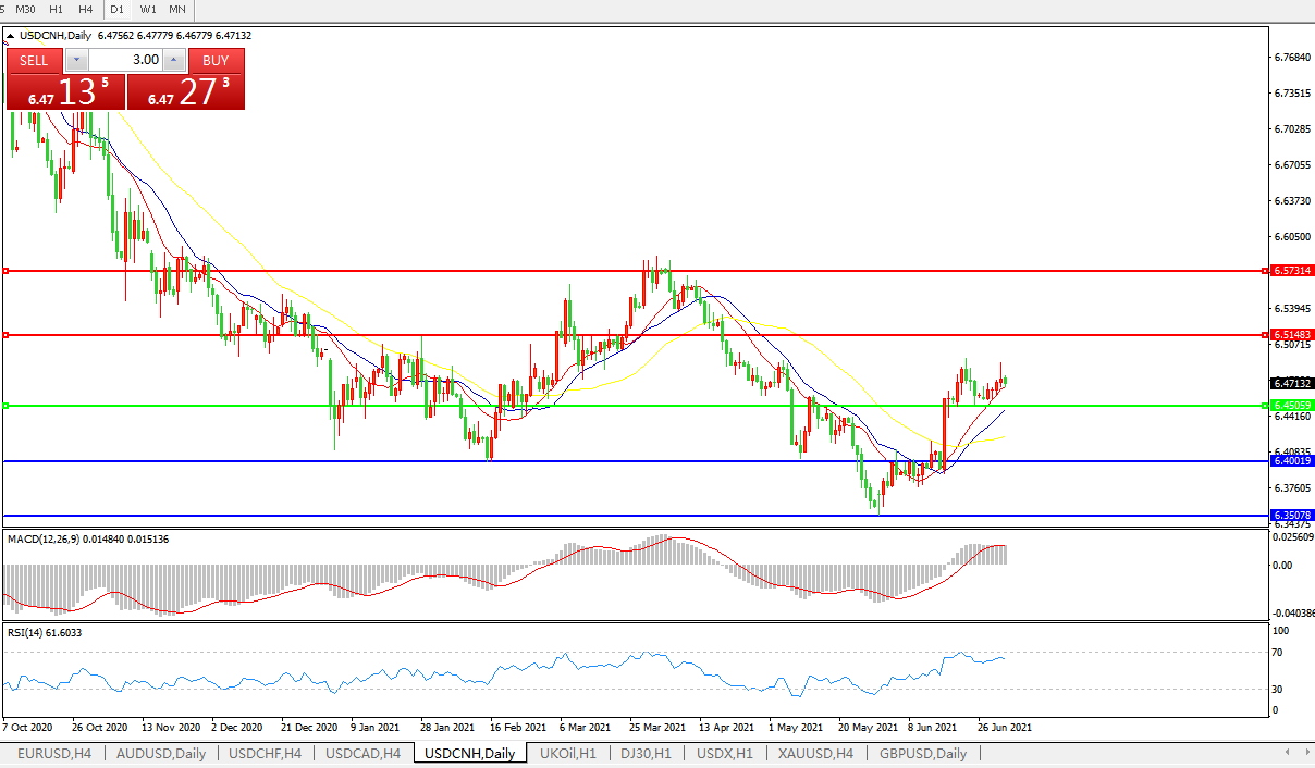 交易策略: 在6.4505之上,看涨,目标价位为6.5150,然后为6.5730。备选策略: 在6.4505之下,看跌,目标价位为6.4000,然后为6.3505。