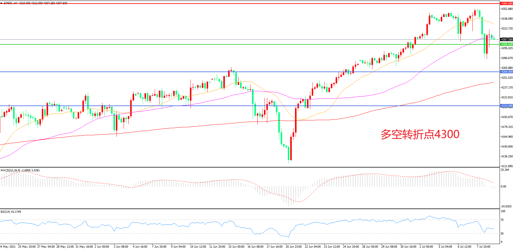 交易策略:在4300.00之上看涨,目标4360.00    4430.00