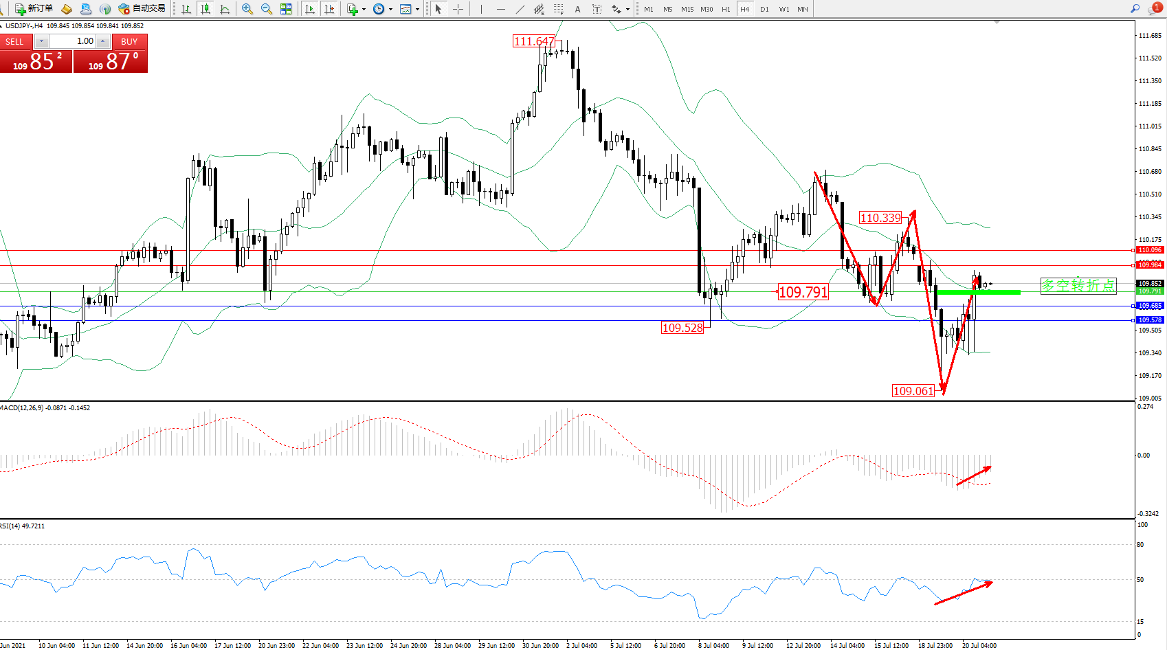 技术点评:空头动力延续布林带指标通道中下轨区间持续震荡下行,低位下破下轨至109.061位置后快速回升,持续上移至中轨附近节点后开始整理中,短期或维持震荡走势中,布林带指标呈下行趋势走势后开始整理平移中,MACD指标处于0轴线下方空头区域维持窄幅整理中,RSI指标处于空头区域弱势整理后缓慢回升至50均衡线附近徘徊;