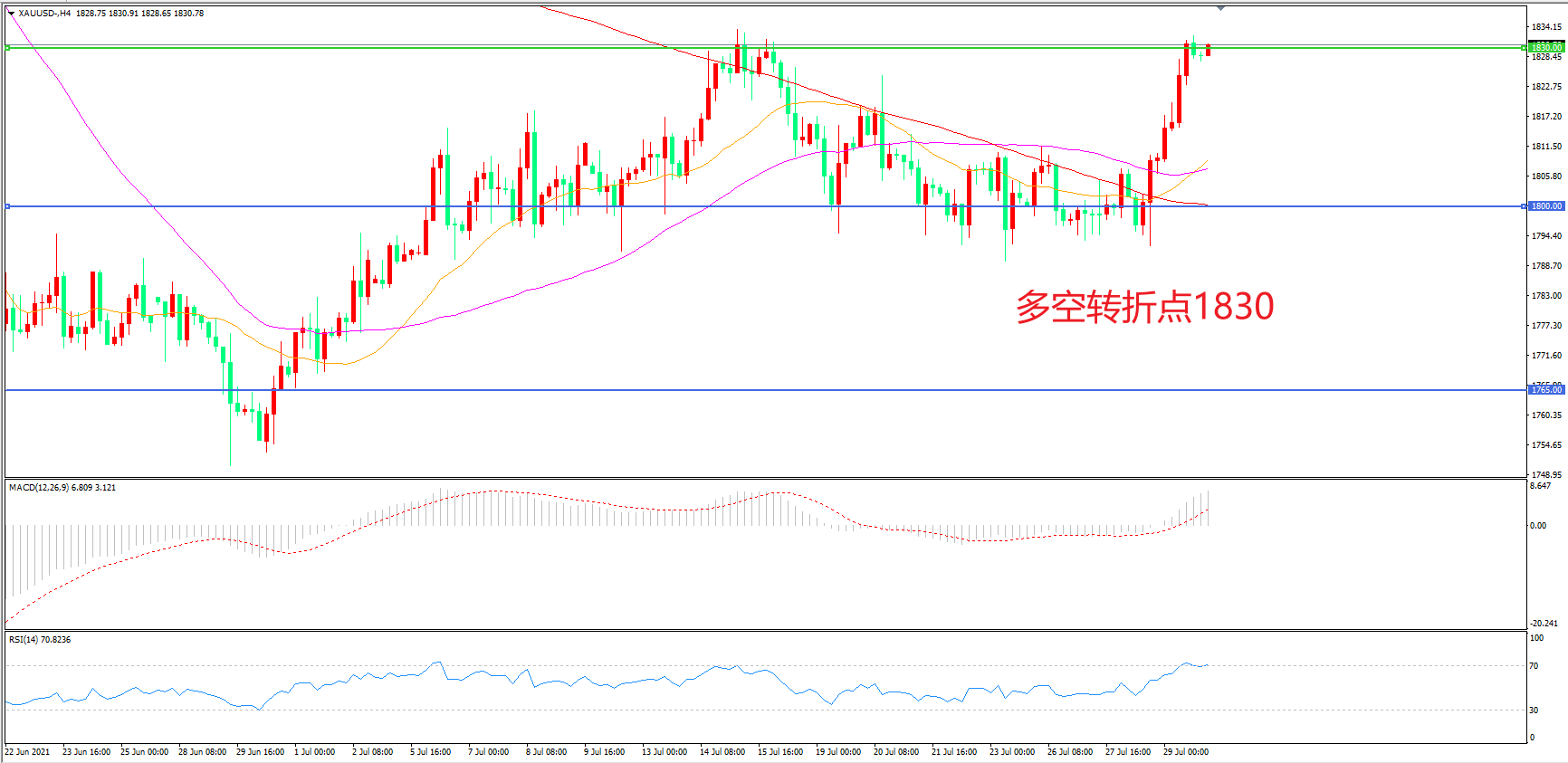 交易策略: 在1830.00之上看涨,目标1860.00 1900.00