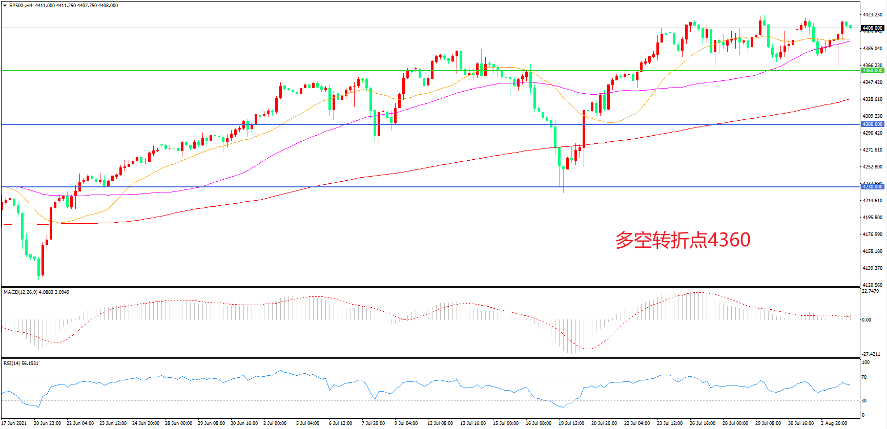多空转折点:4360.00