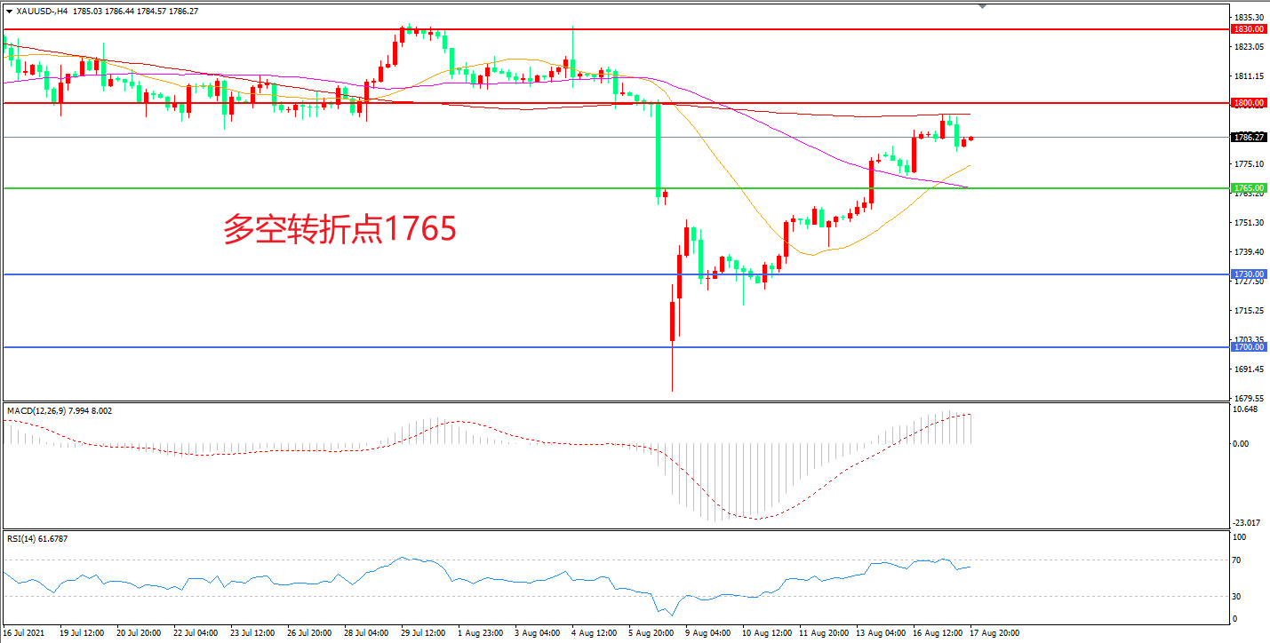 交易策略: 在1765.00之上看涨,目标1800.00 1830.00