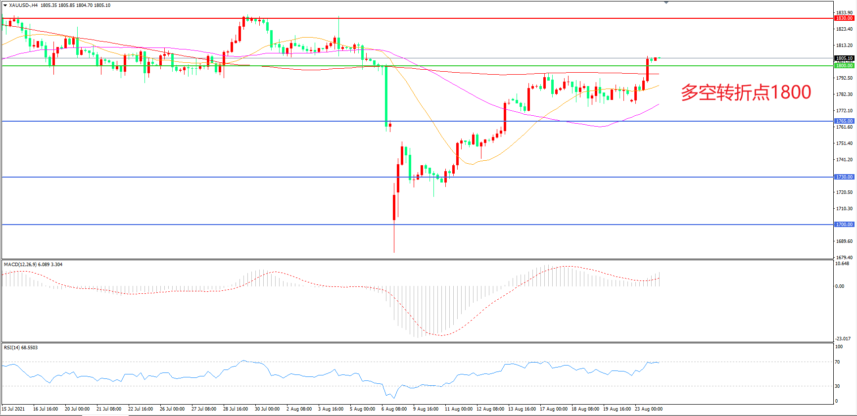 多空转折点:1800.00